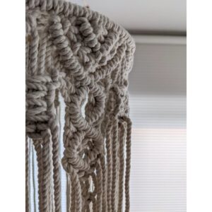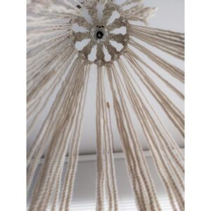 Introducing our stunning Macrame Chandelier, a captivating blend of bohemian elegance and modern design. Handcrafted with meticulous attention to detail, this chandelier brings a touch of artisanal charm to any space. Intricately woven macrame knots create a mesmerizing play of light and shadow, casting a warm and inviting ambiance throughout the room. Whether adorning a cozy living room, a serene bedroom, or a chic dining area, the Macrame Chandelier adds a unique focal point that elevates the aesthetic appeal of your home. Embrace the beauty of natural materials and handmade craftsmanship with our exquisite Macrame Chandelier, a statement piece that exudes timeless style and sophistication.
