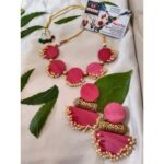 the Rose Radiance Choker and Earrings Set, a stunning fusion of vibrant red and pink hues adorned with lustrous white pearls. This handcrafted ensemble features a captivating choker necklace and matching oxidized metal earrings, each piece meticulously designed to blend traditional elegance with contemporary style. The intricate detailing and radiant colors make this set a perfect choice for adding a touch of sophistication and charm to any outfit, whether for festive occasions or special gatherings.